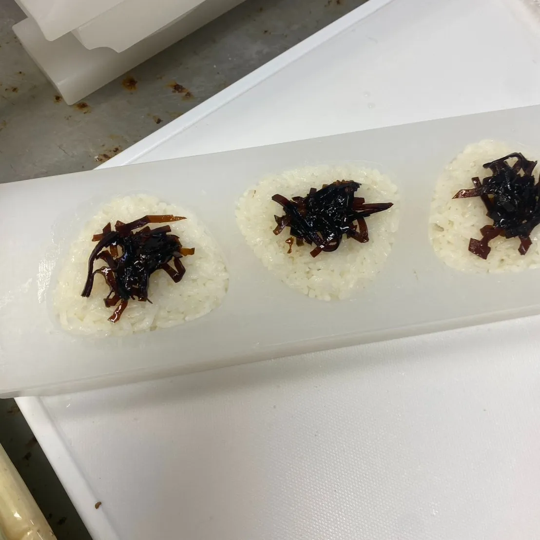 梅をちょこん、手作りおにぎりの工程 加須の就労支援B型作業所まごころです。今日は具材のせの工程を進めました。形をそろえたごはんに海苔を巻き、仕上げに梅をちょこんと乗せます。見た目と食べやすさを確かめながら、1個ずつ専用パックへ…